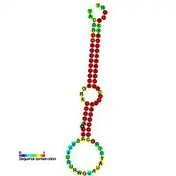 - ↑ Berezikov E, Guryev V, van de Belt J and al. (2005). "Phylogenetic shadowing and computational identification of human microRNA genes". Cell. 120 (1): 21–4. doi:10.1016/j.cell.2004.12.031. PMID 15652478.