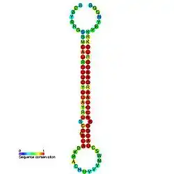 The miR-1 microRNA precursor is a small micro RNA that regulates its target protein's expression in the cell. microRNAs are transcribed as ~70 nucleotide precursors and subsequently processed by the Dicer enzyme to give products at ~22 nucleotides.[1] In this case the mature sequence comes from the 3' arm of the precursor. The mature products are thought to have regulatory roles through complementarity to mRNA. In humans there are two distinct microRNAs that share an identical mature sequence, and these are called miR-1-1 and miR-1-2.
