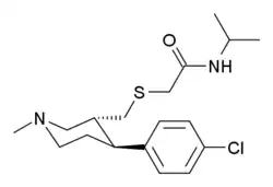 - ↑ He R, Kurome T, Giberson KM, Johnson KM, Kozikowski AP (2005). "Further structure-activity relationship studies of piperidine-based monoamine transporter inhibitors: effects of piperidine ring stereochemistry on potency. Identification of norepinephrine transporter selective ligands and broad-spectrum transporter inhibitors". J. Med. Chem. 48 (25): 7970–9. doi:10.1021/jm050694s. PMID 16335921.
