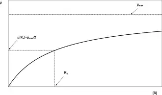 - Ks is the "half-velocity constant"—the value of [S] when μ/μmax = 0.5.