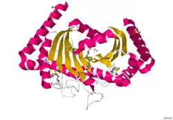 - ↑ PDB: 2ZVZ; Kojima S, Imada K, Sakuma M, et al. (August 2009). "Stator assembly and activation mechanism of the flagellar motor by the periplasmic region of MotB". Mol. Microbiol. 73 (4): 710–8. doi:10.1111/j.1365-2958.2009.06802.x. PMID 19627504.