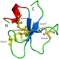 ![]() Structure of crotamine, a Na+ channel affecting toxin from Crotalus durissus terrificus venom.[1] | |||||||||||