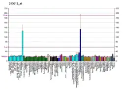 The human NEDD4 gene is located on chromosome 15q21.3, and consists of 30 exons that transcribe five protein variants of NEDD4, all of which vary in the C2 domain but share 100% identity from the first WW domain through to the end of the protein.[15] The mouse Nedd4 gene is located on chromosome 9.[5] NEDD4 is a 120kDa protein that is expressed in most tissues, including brain, heart, lung, kidney, and skeletal muscle.[16] The NEDD4 protein localizes to the cytoplasm, mainly in the perinuclear region and cytoplasmic periphery.[5][16]