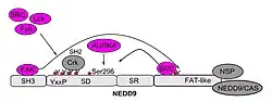 Neural precursor cell expressed developmentally down-regulated protein 9 (NEDD-9) is a protein that in humans is encoded by the NEDD9 gene.[5] NEDD-9 is also known as enhancer of filamentation 1 (EF1), CRK-associated substrate-related protein (CAS-L), and Cas scaffolding protein family member 2 (CASS2). An important paralog of this gene is BCAR1.