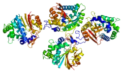 Nicotinamide N-methyltransferase (NNMT) is an enzyme that in humans is encoded by the NNMT gene.[5] NNMT catalyzes the methylation of nicotinamide and similar compounds using the methyl donor S-adenosyl methionine (SAM-e) to produce S-adenosyl-L-homocysteine (SAH) and 1-methylnicotinamide.[6]