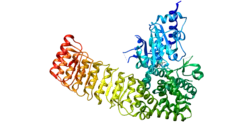 Nucleotide-binding oligomerization domain-containing protein 2 (NOD2), also known as caspase recruitment domain-containing protein 15 (CARD15) or inflammatory bowel disease protein 1 (IBD1), is a protein that in humans is encoded by the NOD2 gene located on chromosome 16.[5][6] NOD2 plays an important role in the immune system. It recognizes bacterial molecules (peptidoglycans) and stimulates an immune reaction.[7]