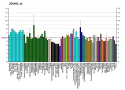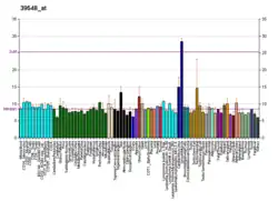 Neuronal PAS domain protein 2 (NPAS2) also known as member of PAS protein 4 (MOP4) is a transcription factor protein that in humans is encoded by the NPAS2 gene.[5][6] NPAS2 is paralogous to CLOCK, and both are key proteins involved in the maintenance of circadian rhythms in mammals.[7] In the brain, NPAS2 functions as a generator and maintainer of mammalian circadian rhythms. More specifically, NPAS2 is an activator of transcription and translation of core clock and clock-controlled genes through its role in a negative feedback loop in the suprachiasmatic nucleus (SCN), the brain region responsible for the control of circadian rhythms.[8]