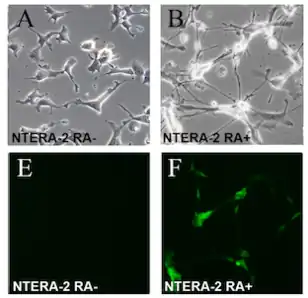 - ↑ Andrews PW (1984). "Retinoic acid induces neuronal differentiation of a cloned human embryonal carcinoma cell line in vitro". Dev Biol. 103 (2): 285–93. doi:10.1016/0012-1606(84)90316-6. PMID 6144603.