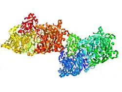 - ↑ Haltia T, Brown K, Tegoni M, Cambillau C, Saraste M, Mattila K, Djinovic-Carugo K (January 2003). "Crystal structure of nitrous oxide reductase from Paracoccus denitrificans at 1.6 A resolution". Biochem. J. 369 (Pt 1): 77–88. doi:10.1042/BJ20020782. PMC 1223067. PMID 12356332.