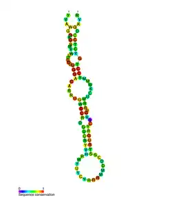 The ncRNA that is involved in rDNA silencing is known as pRNA and has been shown to originate from a spacer promoter located upstream of the pre-ribosomal RNA transcription start site. Once this ncRNA is transcribed it is processed to form a 150–250 nucleotide long RNA molecule and overlaps the rDNA promoter region. Computational analysis of pRNA predicted that pRNA forms a conserved stem loop structure and is shown to be conserved across a number eukaryotes.