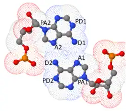 - ↑ Kelly RE, Lee YJ, Kantorovich LN (June 2005). "Homopairing possibilities of the DNA base adenine". The Journal of Physical Chemistry B. 109 (24): 11933–11939. doi:10.1021/jp050962y. PMID 16852470.