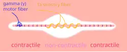 ![]() A muscle spindle, with γ motor and Ia sensory fibers | |