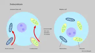 - ↑ Archibald JM (2015). "Endosymbiosis and Eukaryotic Cell Evolution". Current Biology. 25 (19): R911–R921. Bibcode:2015CBio...25.R911A. doi:10.1016/j.cub.2015.07.055. PMID 26439354.