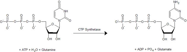 Once UMP is synthesized, it undergoes phosphorylation using ATP to form uridine-triphosphate (UTP). UTP can then be converted into cytidine-triphosphate (CTP) in a reaction catalyzed by CTP synthetase, which utilizes glutamine as an amine donor.