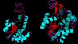 - ↑ Schlauderer GJ, Proba K, Schulz GE (February 1996). "Structure of a mutant adenylate kinase ligated with an ATP-analogue showing domain closure over ATP". Journal of Molecular Biology. 256 (2): 223–7. doi:10.1006/jmbi.1996.0080. PMID 8594191.