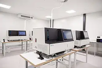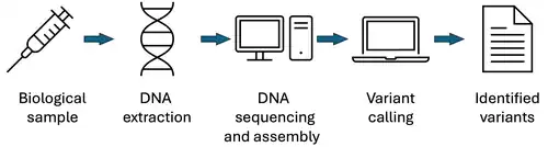 Starting from a biological sample (e.g., saliva or blood), it is possible to extract the individual's DNA and sequence it with sequencing machinery to translate the biological information into a textual sequence of bases.[5] Then, once the entire genome is obtained through the genome assembly process, the DNA can be analyzed to extract information that is key in several domains, including personalized medicine and medical diagnostics.[6]