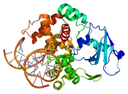 - ↑ Osorio A, Milne RL, Kuchenbaecker K, Vaclová T, Pita G, Alonso R, et al. (April 2014). "DNA glycosylases involved in base excision repair may be associated with cancer risk in BRCA1 and BRCA2 mutation carriers". PLOS Genetics. 10 (4): e1004256. doi:10.1371/journal.pgen.1004256. PMC 3974638. PMID 24698998.