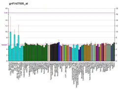 Olfactory receptors interact with odorant molecules in the nose, to initiate a neuronal response that triggers the perception of a smell. The olfactory receptor proteins are members of a large family of G-protein-coupled receptors (GPCR) arising from single coding-exon genes. Olfactory receptors share a 7-transmembrane domain structure with many neurotransmitter and hormone receptors and are responsible for the recognition and G protein-mediated transduction of odorant signals. The olfactory receptor gene family is the largest in the genome. The nomenclature assigned to the olfactory receptor genes and proteins for this organism is independent of other organisms.[5]