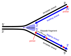 - ↑ Ogawa T, Okazaki T (1980). "Discontinuous DNA replication". Annual Review of Biochemistry. 49: 421–457. doi:10.1146/annurev.bi.49.070180.002225. PMID 6250445.