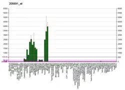 Olfactomedin 1, also known as noelin 1 or pancortin, is a protein that in humans is encoded by the OLFM1 gene.[5][6] The name noelin stands for "neuronal olfactomedin-related endoplasmic reticulum-localized 1".[7]