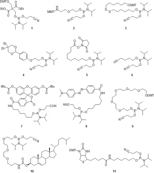 - ↑ "Beta-Cyanoethyl Phosphoramidites". Products.appliedbiosystems.com. Retrieved 2009-05-12.