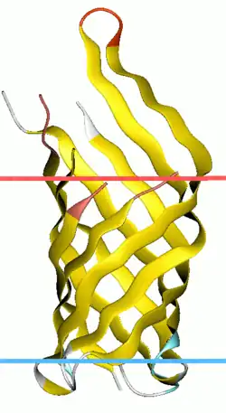 - ↑ Pautsch A, Schulz GE (Nov 1998). "Structure of the outer membrane protein A transmembrane domain". Nature Structural Biology. 5 (11): 1013–7. doi:10.1038/2983. PMID 9808047. S2CID 20529728.