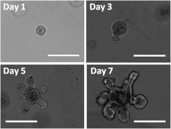 Other significant early advancements included in 2013, Madeline Lancaster at the Institute of Molecular Biotechnology of the Austrian Academy of Sciences established a protocol starting from pluripotent stem cells to generate cerebral organoids that mimic the developing human brain's cellular organization.[22] Meritxell Huch and Craig Dorrell at Hubrecht Institute and University Medical Center Utrecht demonstrated that single Lgr5+ cells from damaged mouse liver can be clonally expanded as liver organoids in Rspo1-based culture medium over several months.[23] In 2014, Artem Shkumatov et al. at the University of Illinois at Urbana-Champaign demonstrated that cardiovascular organoids can be formed from ES cells through modulation of the substrate stiffness, to which they adhere. Physiological stiffness promoted three-dimensionality of EBs and cardiomyogenic differentiation.[24]