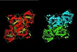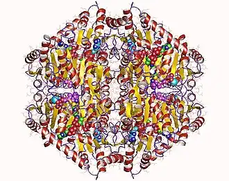 - ↑ Berthold CL, Moussatche P, Richards NG, Lindqvist Y (December 2005). "Structural basis for activation of the thiamin diphosphate-dependent enzyme oxalyl-CoA decarboxylase by adenosine diphosphate". The Journal of Biological Chemistry. 280 (50): 41645–54. doi:10.1074/jbc.M509921200. PMID 16216870.