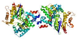 - 1 2 Wan KF, Sambi BS, Tate R, Waters C, Pyne NJ (May 2003). "The inhibitory gamma subunit of the type 6 retinal cGMP phosphodiesterase functions to link c-Src and G-protein-coupled receptor kinase 2 in a signaling unit that regulates p42/p44 mitogen-activated protein kinase by epidermal growth factor". The Journal of Biological Chemistry. 278 (20): 18658–63. doi:10.1074/jbc.M212103200. PMID 12624098. S2CID 25824189.
