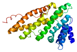 - ↑ Tebar, F; Bohlander S K; Sorkin A (Aug 1999). "Clathrin assembly lymphoid myeloid leukemia (CALM) protein: localization in endocytic-coated pits, interactions with clathrin, and the impact of overexpression on clathrin-mediated traffic" (PDF). Mol. Biol. Cell. 10 (8). UNITED STATES: 2687–702. doi:10.1091/mbc.10.8.2687. ISSN 1059-1524. PMC 25500. PMID 10436022.