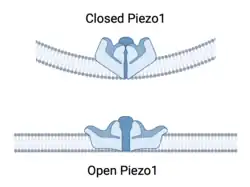 - ↑ Wang Y, Xiao B (March 2018). "The mechanosensitive Piezo1 channel: structural features and molecular bases underlying its ion permeation and mechanotransduction". The Journal of Physiology. 596 (6): 969–978. doi:10.1113/JP274404. PMC 5851880. PMID 29171028.