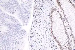 - ↑ Truninger K, Menigatti M, Luz J, Russell A, Haider R, Gebbers JO, Bannwart F, Yurtsever H, Neuweiler J, Riehle HM, Cattaruzza MS, Heinimann K, Schär P, Jiricny J, Marra G (2005). "Immunohistochemical analysis reveals high frequency of PMS2 defects in colorectal cancer". Gastroenterology. 128 (5): 1160–71. doi:10.1053/j.gastro.2005.01.056. PMID 15887099.