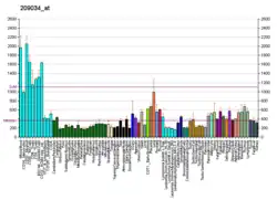 - ↑ Chen J, Liu L, Pohajdak B (Dec 1995). "Cloning a cDNA from human NK/T cells which codes for a protein with high proline content". Biochim Biophys Acta. 1264 (1): 19–22. doi:10.1016/0167-4781(95)00159-e. PMID 7578250.