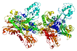- ↑ Wang Y, Farr CL, Kaguni LS (May 1997). "Accessory subunit of mitochondrial DNA polymerase from Drosophila embryos. Cloning, molecular analysis, and association in the native enzyme". The Journal of Biological Chemistry. 272 (21): 13640–6. doi:10.1074/jbc.272.21.13640. PMID 9153213.