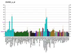 - ↑ Rual JF, Venkatesan K, Hao T, et al. (October 2005). "Towards a proteome-scale map of the human protein-protein interaction network". Nature. 437 (7062): 1173–8. Bibcode:2005Natur.437.1173R. doi:10.1038/nature04209. PMID 16189514. S2CID 4427026.