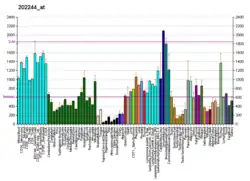 - 1 2 3 GRCm38: Ensembl release 89: ENSMUSG00000005779 – Ensembl, May 2017