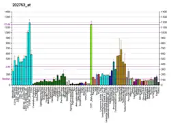 - ↑ Ewing RM, Chu P, Elisma F, Li H, Taylor P, Climie S, McBroom-Cerajewski L, Robinson MD, O'Connor L, Li M, Taylor R, Dharsee M, Ho Y, Heilbut A, Moore L, Zhang S, Ornatsky O, Bukhman YV, Ethier M, Sheng Y, Vasilescu J, Abu-Farha M, Lambert JP, Duewel HS, Stewart II, Kuehl B, Hogue K, Colwill K, Gladwish K, Muskat B, Kinach R, Adams SL, Moran MF, Morin GB, Topaloglou T, Figeys D (2007). "Large-scale mapping of human protein–protein interactions by mass spectrometry". Mol. Syst. Biol. 3 (1): 89. doi:10.1038/msb4100134. PMC 1847948. PMID 17353931.