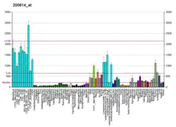 - ↑ Honoré B, Leffers H, Madsen P, Celis JE (Feb 1994). "Interferon-gamma up-regulates a unique set of proteins in human keratinocytes. Molecular cloning and expression of the cDNA encoding the RGD-sequence-containing protein IGUP I-5111". Eur J Biochem. 218 (2): 421–30. doi:10.1111/j.1432-1033.1993.tb18392.x. PMID 8269930.