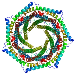 - Knowlton JR, Johnston SC, Whitby FG, Realini C, Zhang Z, Rechsteiner M, Hill CP (1998). "Structure of the proteasome activator REGalpha (PA28alpha)". Nature. 390 (6660): 639–43. Bibcode:1997Natur.390..639K. doi:10.1038/37670. PMID 9403698. S2CID 4309279.