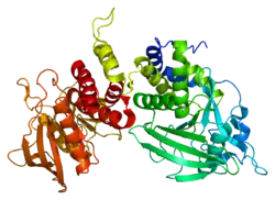 - ↑ Wallace MJ, Fladd C, Batt J, Rotin D (May 1998). "The second catalytic domain of protein tyrosine phosphatase delta (PTP delta) binds to and inhibits the first catalytic domain of PTP sigma". Mol. Cell. Biol. 18 (5): 2608–16. doi:10.1128/MCB.18.5.2608. PMC 110640. PMID 9566880.