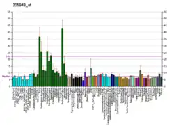 - 1 2 Tozlu S, Girault I, Vacher S, Vendrell J, Andrieu C, Spyratos F, et al. (2006). "Identification of novel genes that co-cluster with estrogen receptor alpha in breast tumor biopsy specimens, using a large-scale real-time reverse transcription-PCR approach". Endocr Relat Cancer. 13 (4): 1109–20. doi:10.1677/erc.1.01120. PMID 17158757.