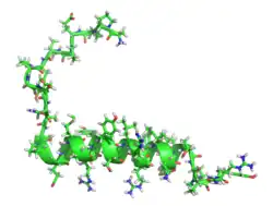 Pancreatic polypeptide consists of 36 amino acids.[2][3] It has a molecular weight about 4200 Da.[2] It has a similar structure to neuropeptide Y.[3]
