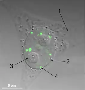 - 1 2 3 Hu SB, Yao RW, Chen LL (September 2016). "Shedding light on paraspeckle structure by super-resolution microscopy". The Journal of Cell Biology. 214 (7): 789–91. doi:10.1083/jcb.201609008. PMC 5037413. PMID 27646270.