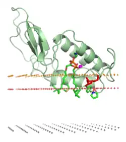 - ↑ Lomize AL, Pogozheva ID, Lomize MA, Mosberg HI (June 2006). "Positioning of proteins in membranes: a computational approach". Protein Science. 15 (6): 1318–1333. doi:10.1110/ps.062126106. PMC 2242528. PMID 16731967.