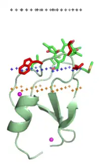 - ↑ Murray D, Honig B (January 2002). "Electrostatic control of the membrane targeting of C2 domains". Molecular Cell. 9 (1): 145–154. doi:10.1016/S1097-2765(01)00426-9. PMID 11804593.