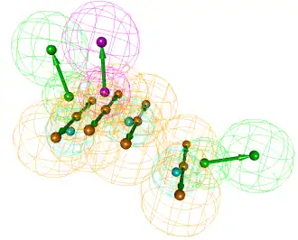 - Abstraction – Transform the superimposed molecules into an abstract representation. For example, superimposed phenyl rings might be referred to more conceptually as an 'aromatic ring' pharmacophore element. Likewise, hydroxy groups could be designated as a 'hydrogen-bond donor/acceptor' pharmacophore element.