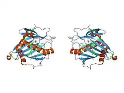 - ↑ Roderick SL, Chan WW, Agate DS, Olsen LR, Vetting MW, Rajashankar KR, Cohen DE (July 2002). "Structure of human phosphatidylcholine transfer protein in complex with its ligand". Nature Structural & Molecular Biology. 9 (7): 507–11. doi:10.1038/nsb812. PMID 12055623. S2CID 8208598.