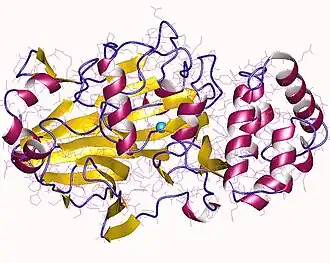 - ↑ Cleasby A, Wonacott A, Skarzynski T, Hubbard RE, Davies GJ, Proudfoot AE, Bernard AR, Payton MA, Wells TN (May 1996). "The x-ray crystal structure of phosphomannose isomerase from Candida albicans at 1.7 angstrom resolution". Nature Structural Biology. 3 (5): 470–9. doi:10.1038/nsb0596-470. PMID 8612079.