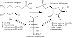 - ↑ Wu R, Xie H, Cao Z, Mo Y (June 2008). "Combined quantum mechanics/molecular mechanics study on the reversible isomerization of glucose and fructose catalyzed by Pyrococcus furiosus phosphoglucose isomerase" (PDF). Journal of the American Chemical Society. 130 (22): 7022–31. doi:10.1021/ja710633c. PMID 18470986.