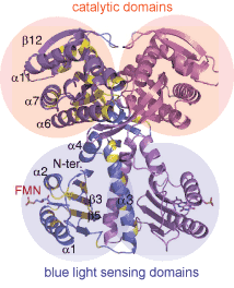 - 1 2 Ohki, Mio; Sugiyama, Kanako; Kawai, Fumihiro; Tanaka, Hitomi; Nihei, Yuuki; Unzai, Satoru; Takebe, Masumi; Matsunaga, Shigeru; Adachi, Shin-ichi; Shibayama, Naoya; Zhou, Zhiwen (2016-05-31). "Structural insight into photoactivation of an adenylate cyclase from a photosynthetic cyanobacterium". Proceedings of the National Academy of Sciences. 113 (24): 6659–6664. Bibcode:2016PNAS..113.6659O. doi:10.1073/pnas.1517520113. ISSN 0027-8424. PMC 4914150. PMID 27247413.